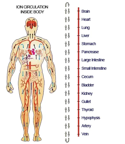 По влегувањето во телото, негативните јони учествуваат во сложените биолошки процеси кои науката ги открива, објаснува и опишува во современата медицина. Распределбата на позитивното и негативното електрично полнење може да го одреди здравјето, растот и работниот капацитет на живите суштества.