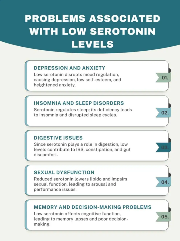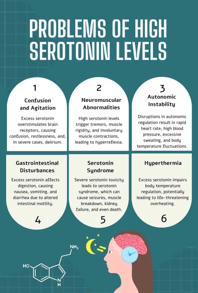 – нивото на серотонин во организмот се одржува на нормални вредности, што резултира со елиминирање на стресот, анксиозноста, психоневрозите, главоболките итн.