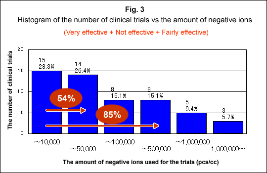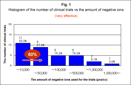 Според научните истражувања, по десет минути негативна јонска терапија, нивото на хистамин во крвта се намалило за 30%, во плазмата за 42,5%, еритроцитите за 42,7% и тромбоцитите за 72,3%.