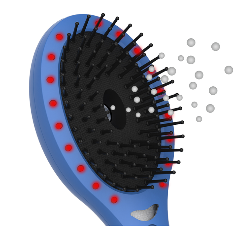 Оваа револуционерна четка за коса користи црвено LED светло за да го стимулира растот на косата и да го намали опаѓањето. Во исто време, негативните јони го отстрануваат статичкиот електрицитет од косата и ја прават посјајна, додека функцијата за масажа обезбедува подобра циркулација на крвта во скалпот, а со тоа и поголем проток на хранливи материи до фоликулите на косата. Испушта 20 милиони негативни јони/cm³ во секунда