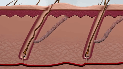 Други студии открија дека на сличен начин терапијата со црвено светло го зголемува протокот на крв во фоликулите на косата на скалпот и го стимулира метаболизмот на фоликулите на косата во фазата на катаген или телоген. Ова ја забрзува нивната транзиција во анагена фаза. Нежно стимулираните епидермални матични клетки во фоликулот на косата влегуваат во анагена фаза – фаза на раст. Така, се забрзува растот само на живите фоликули на косата, но не дозволува веќе мртвите фоликули на косата да започнат со раст на косата. За побрзи резултати, серумите за раст на косата може да се користат истовремено со терапија со црвено LED светло. Терапијата со LED светло е сосема безбедна и не предизвикува несакани ефекти.